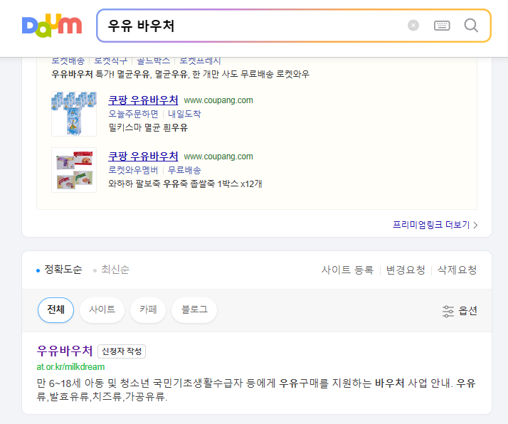 1. 우유 바우처 공식 홈페이지 접속