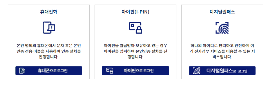 6. 개인의 인증방법을 선택하여 인증을 진행합니다. 인증 후, 다시금 메인 화면으로 넘어 갈 수 있습니다. 앞서 언급한 절차를 진행합니다.