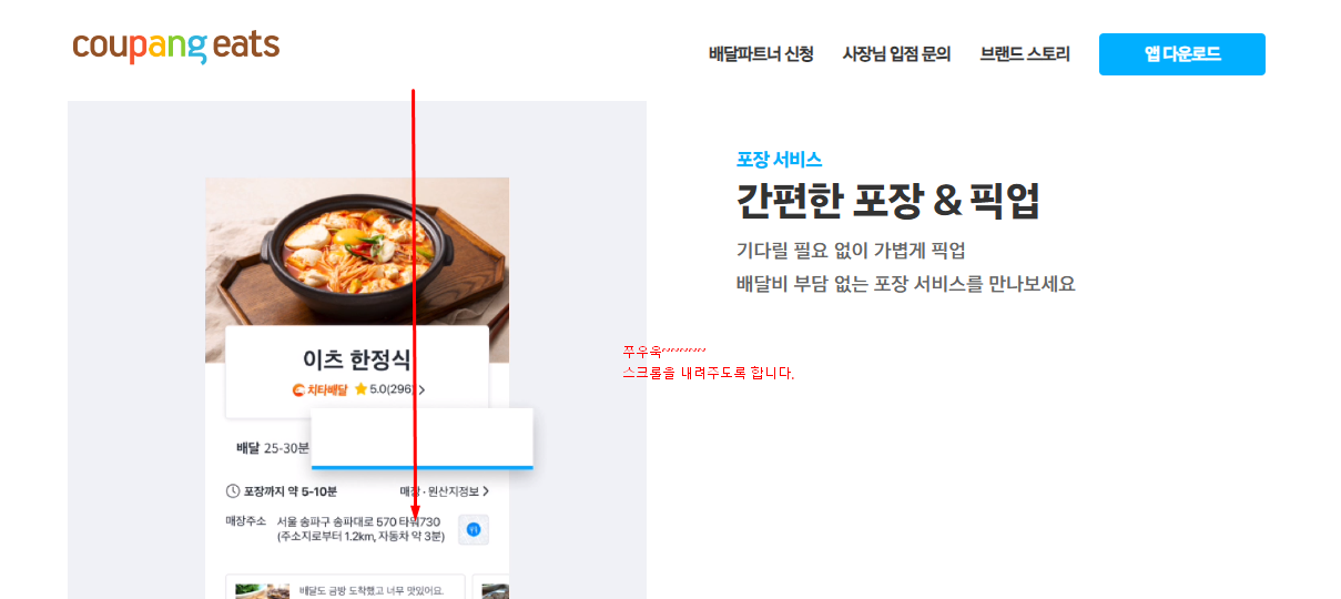 2. 공식 사이트 메인 화면의 하단으로 이동